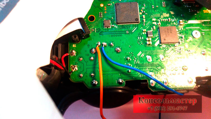 Калибровка джойстика SONY PlayStation 4 SONY PlayStation4 замена 3D-джойстиков калибровка джойстика 1 1 1 1 1 1 1 1 1 1 Рейтинг 1.82 [64 Голоса (ов)] Не для кого не секрет, что самая уязвимая деталь в игровых контроллерах SONY PlayStation 4 являются 3D джойстики. Они отвечают за перемещение персонажа и изменения ракурса камеры. По мере выхода из строя механизма 3D джойстиков дефект начинает проявлятся в том, что герой или камера начинают перемещаться даже когда механическое воздействие на ручки 3D джойстиков отсутствует. Дефект достаточно легко устраняется путём замены изношенных деталей в 3D джойстике или замены всего механизма в сборе. Процедура достаточно не сложная, не занимает много времени и стоимость запчастей при самостоятельном ремонте небольшая. Но очень часто после замены 3D механизма джойстика, нарушается центровка и персонаж или камера всё равно продолжают самопроизвольно двигаться в каком либо направлении. Чтобы устранить данный дефект требуется калибровка джойстика SONY PS4. В этой статье я расскажу как сделать эту не очень сложную процедуру. Сначала немного теории. 3D джойстик состоит из механической части за счёт чего можно выбирать направление движения игрового персонажа или ракурса камеры и электрической части, которая преобразует механическое воздействие на 3D джойстик в электрический сигнал, который в последствии обрабатывается микросхемой контроллера и она отправляет необходимые команды игровой консоли SONY PlayStation 4, вследствии чего игровой персонаж или камера перемещается. В устройство механической части я не буду углубляться, там всё достаточно примитивно. Устройство электрической части 3D джойстика тоже очень просто -- на горизонтальной и вертикальной оси стоят переменные резисторы. Один крайний вывод присоединен к "массе" (минус), на другой крайний вывод приходит некоторое опорное напряжение, а на среднем контакте формуется напряжение смещения. В нейтральном положении, когда отсутствует механическое воздействие на 3D джойстик и идеальном резисторе на среднем выводе получается около половины опорного напряжения. Чаще всего проблема кроется именно в них. В идеале этот резистор должен иметь абсолютно симметричное сопротивление относительно центра, но зачастую у этих резисторов наблюдаются различия. И после замены этих резисторов иногда джойстик продолжает "косить" в какую либо сторону. Так как изначально джойстики PlayStation 4 калибруют на заводе при их производстве, не всегда получается что резистор который вы поменяли имеет такие же характеристики как тот с которым он был откалиброван. В общем то отсюда вся проблема и растёт.... Кто хоть немного изучал радиоэлектронику, знают такое понятие как паралельное соединение резисторов, помимо увеличения мощности, можно снизить сопротивление в электрической цепи. Именно этот метод мы и будем использовать при калибровке джойстика SONY PlayStation 4. Ну а теперь к практике. Для калибровки нам понадобится переменный резистор 50-100кОм желательно с линейной характеристикой (когда наблюдается некоторая закономерность между углом поворота и сопротивлением), мультиметр и паяльник. Припаиваем к переменному резистору два провода любой длины - один к любому крайнему выводу, второй к центральному выводу переменного резистора. Для теста джойстиков PS4 я использую онлайн тестер, который работает через браузер -- ht